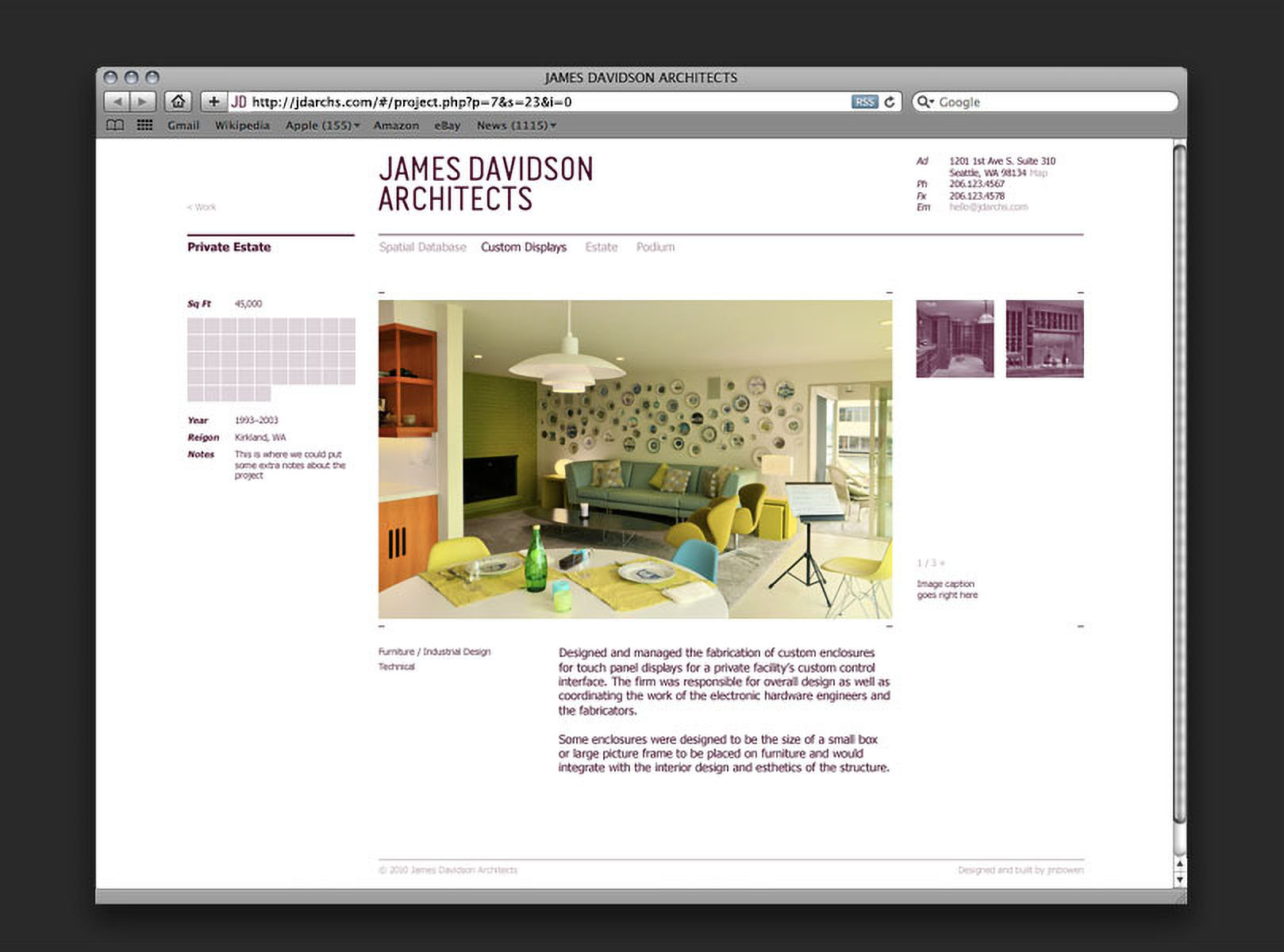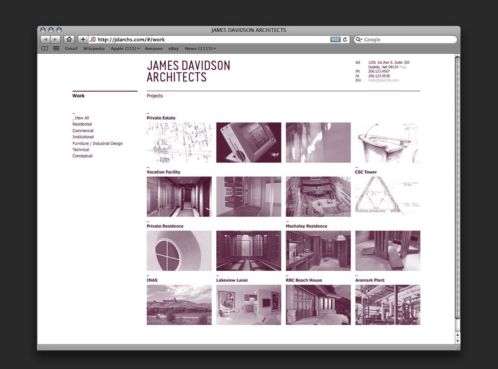The portfolio of this small Seattle architectural firm required a unique approch—much of their work has been for prestigious clients, but done under strict non-disclosure agreements. In this rebrand and website design, emphasis was placed on the scale, complexity and range of work accomplished by the firm.