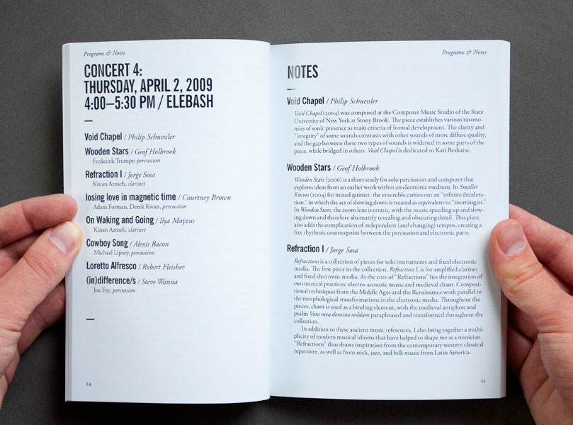 seven/eight was invited to design the materials for the inaugural session of this festival for cutting-edge electronic, interactive, and multi-media music. Logo design by Matt Simpson.